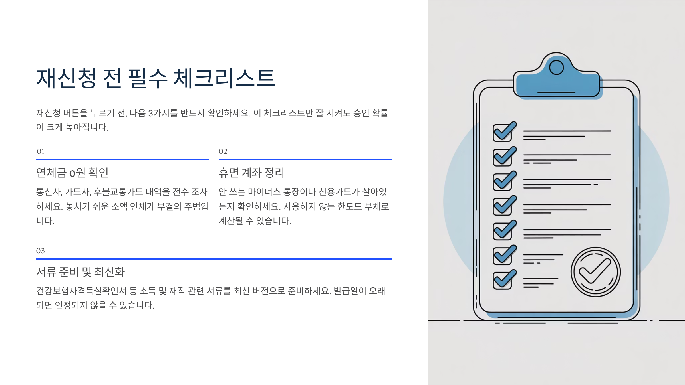 재신청 버튼을 누르기 전, 다음 3가지를 반드시 확인하세요.