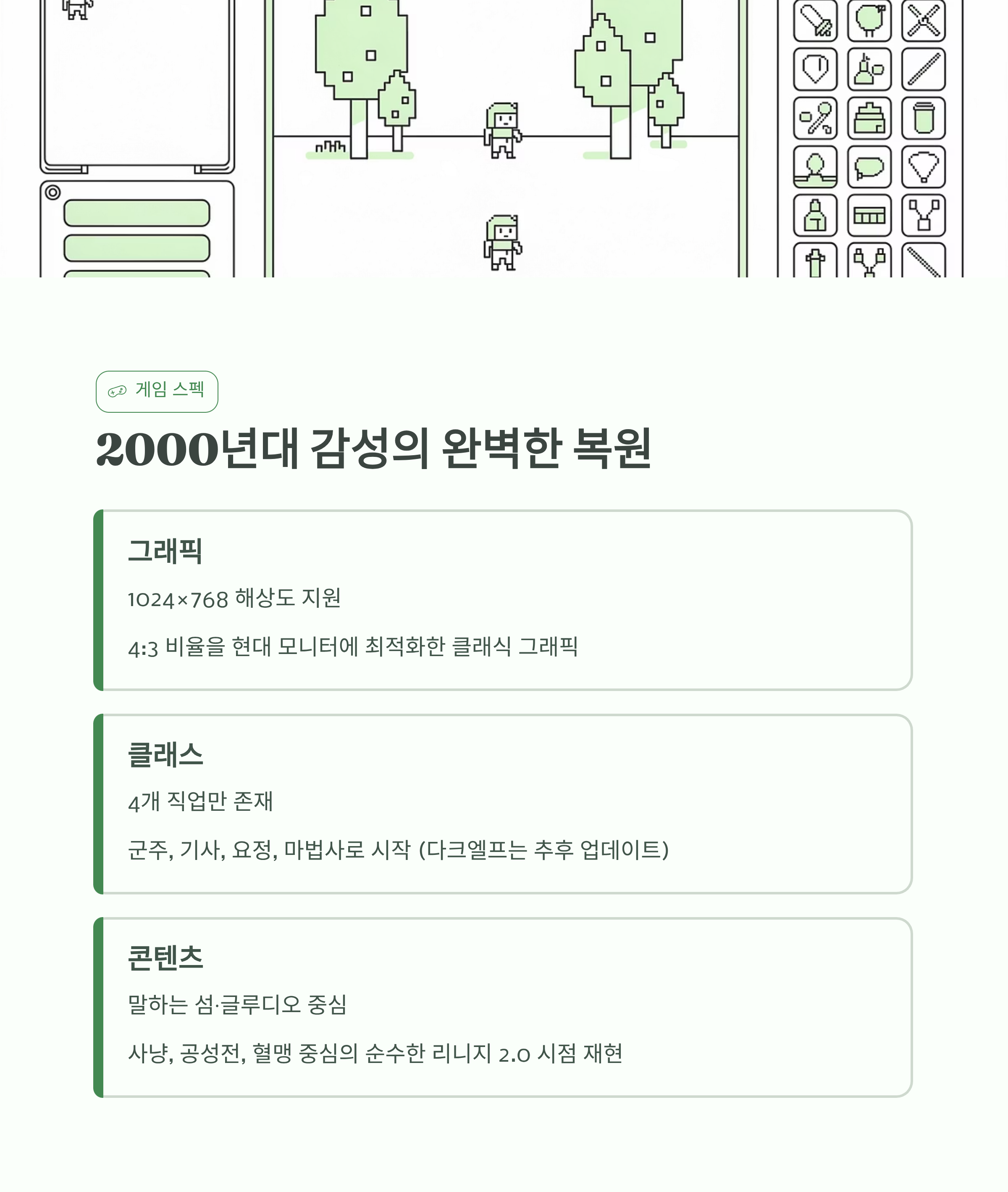 무엇보다 "뽑기" 스트레스 없이, 사냥과 통제, 공성전이라는 리니지 본연의 재미인 "날 것(Raw)"의 감성을 느낄 수 있을 것으로 보입니다.