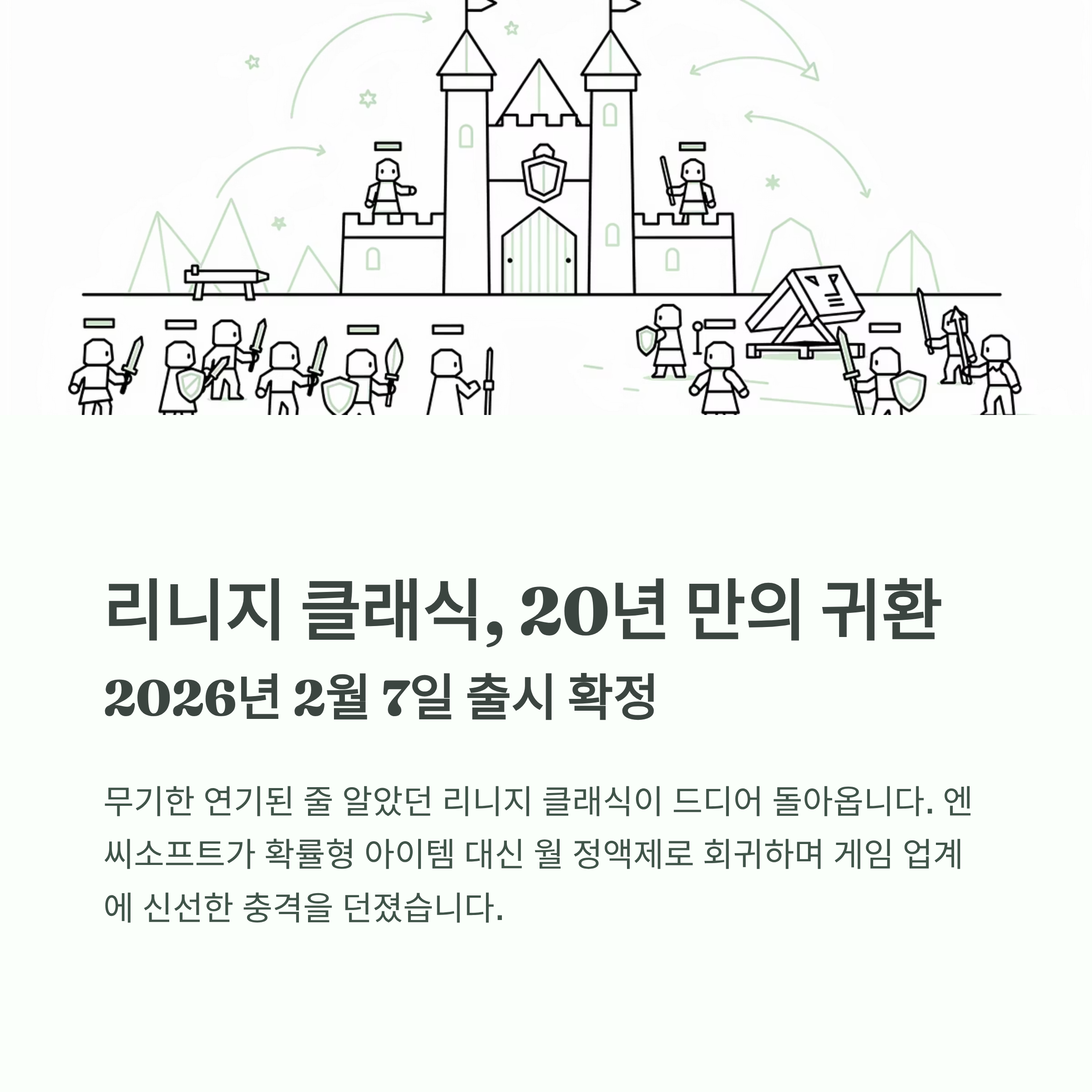 2026년 1월 2일, 엔씨소프트가 게임 업계를 뒤흔들 만한 소식을 발표했습니다. 무기한 연기된 줄 알았던 "리니지 클래식"의 브랜드 페이지를 오픈하고, 2월 7일 정식 출시를 확정한 것입니다.