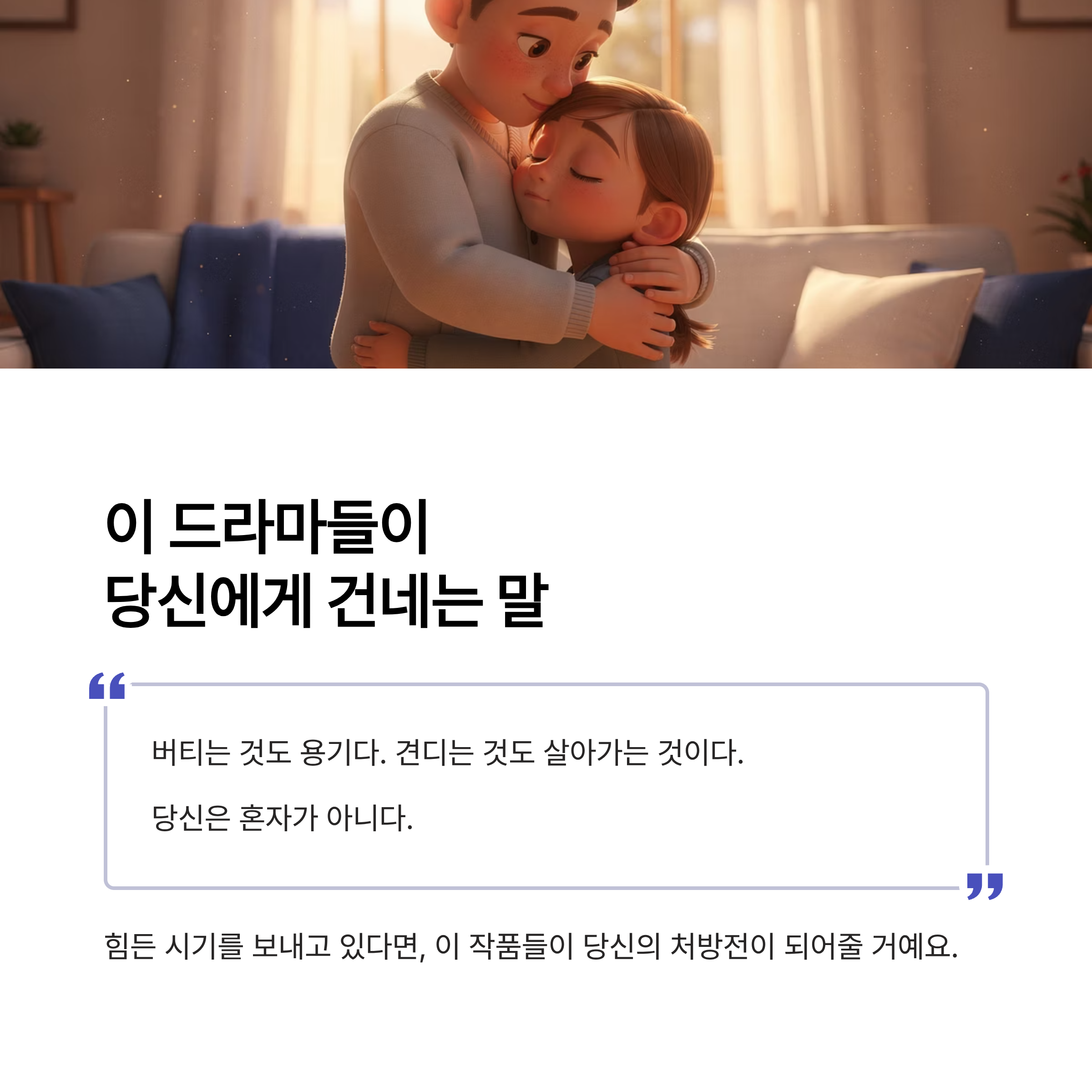 삶이 버겁고 인간관계에 지쳤을 때, 우리는 종종 드라마 속 인물들에게서 위로를 받곤 합니다. 저에게도 "나의 아저씨"는 단순한 드라마가 아니라, 힘든 시기를 버티게 해 준 처방전 같은 작품이었습니다.