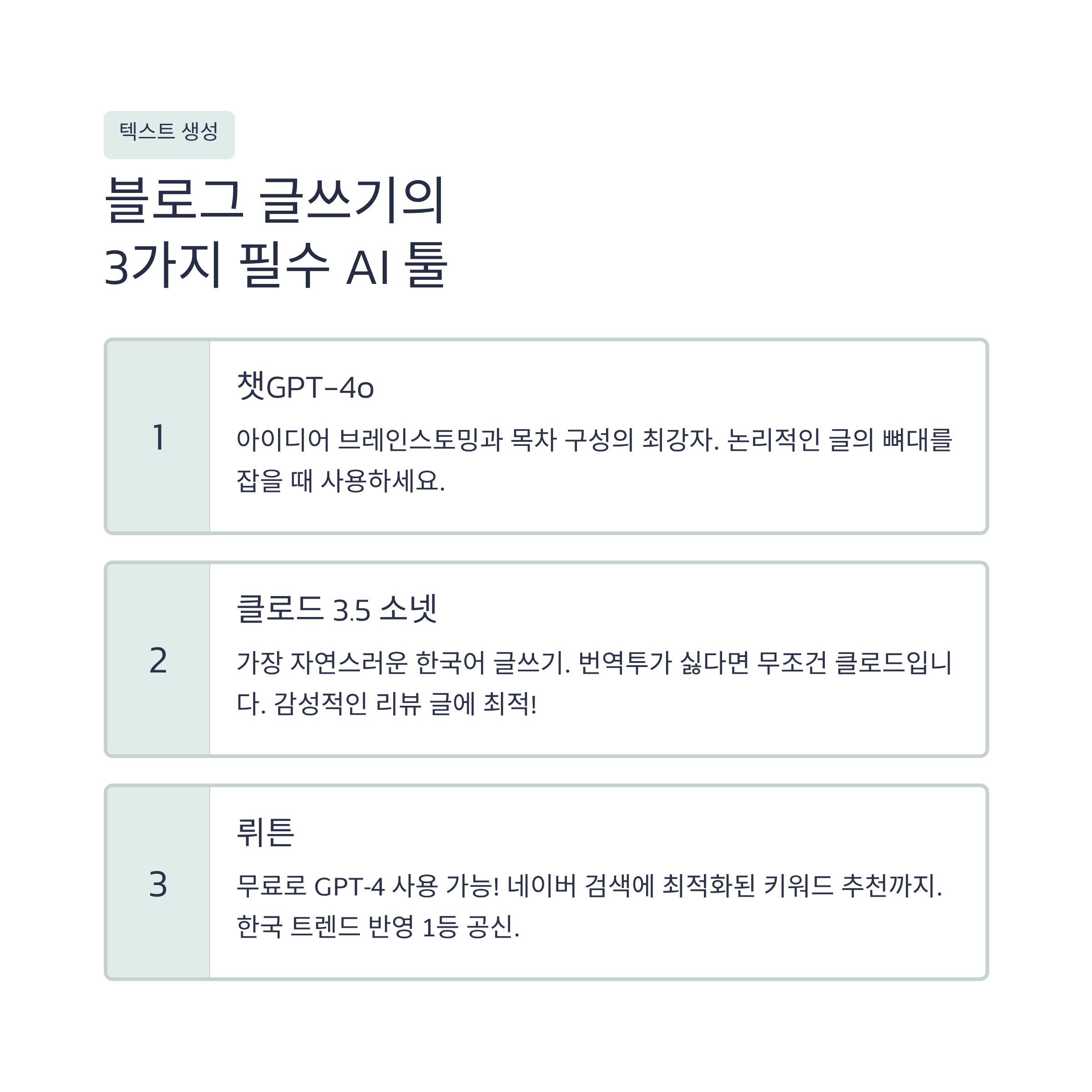 - 검수: 마지막으로 사람이 직접 읽으며 어색한 문장 다듬기 (필수!).