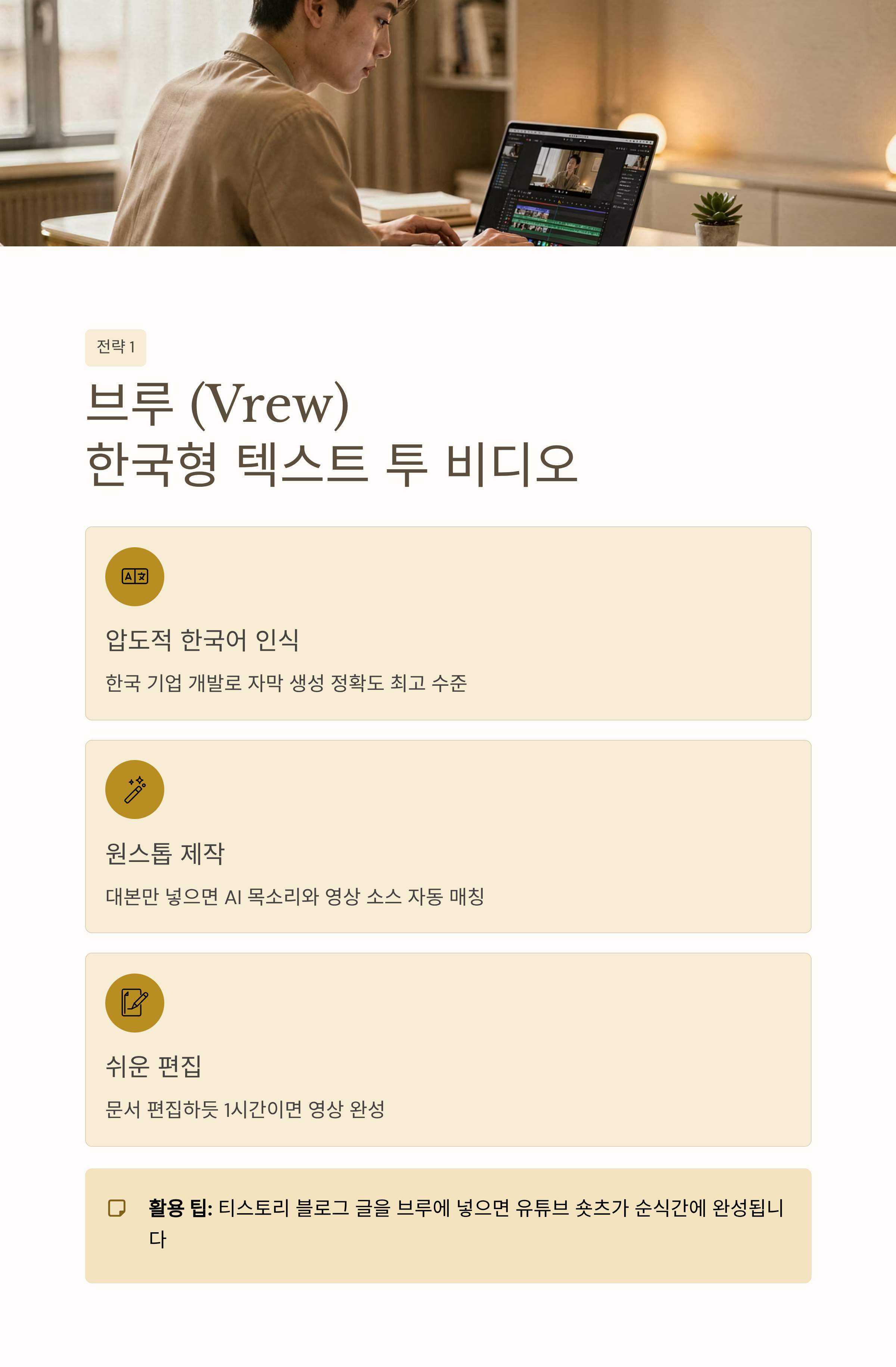 전략 1. "대본만 넣으면 영상 끝" 한국형 텍스트 투 비디오의 정석: 브루 (Vrew)