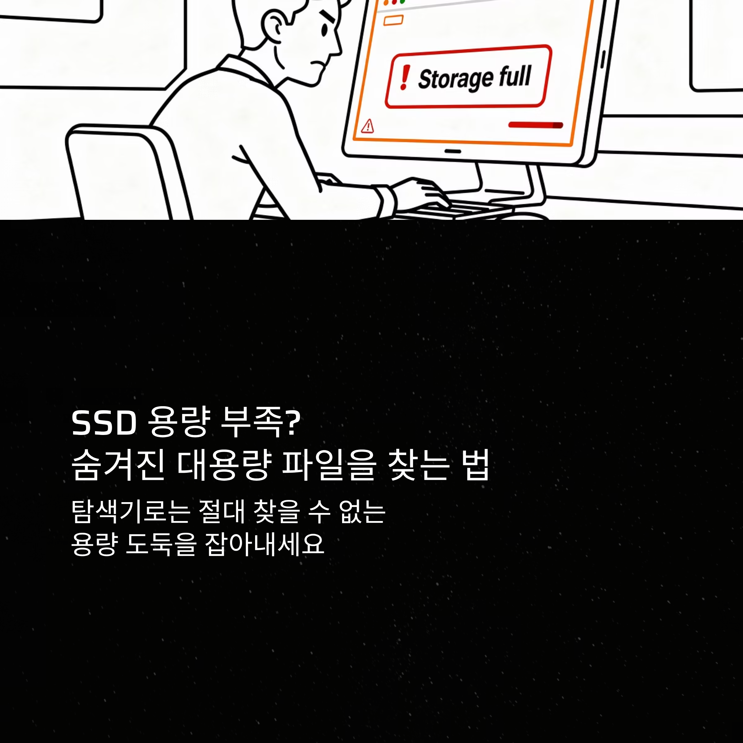 SSD를 사용하다 보면 불필요한 파일을 삭제해도 여전히 디스크 공간이 부족한 경우를 자주 겪습니다. 윈도우 기본 탐색기만으로는 숨겨진 대용량 파일을 찾기가 매우 어렵기 때문입니다.