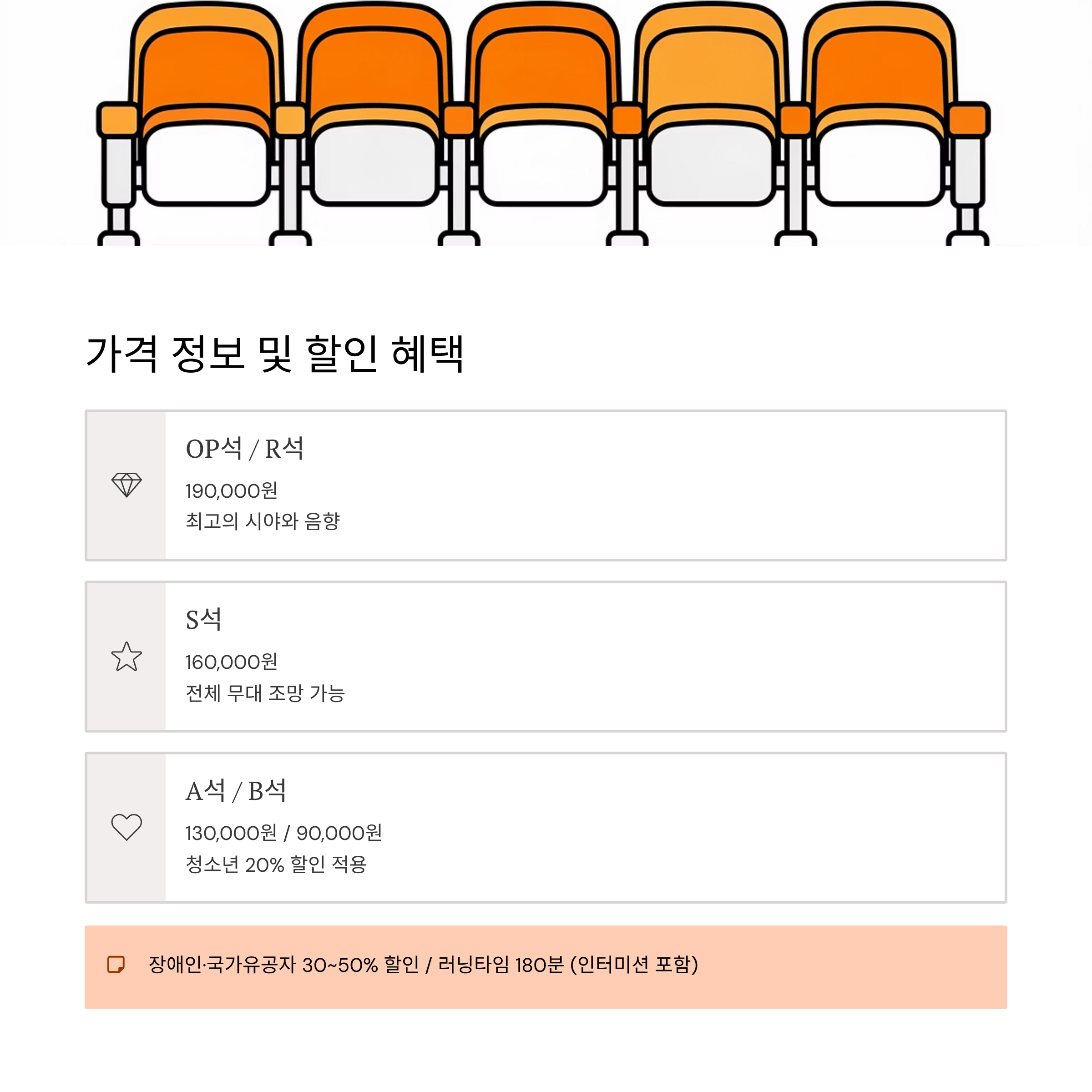 OP석 / R석: 190,000원 S석: 160,000원 A석: 130,000원 B석: 90,000원