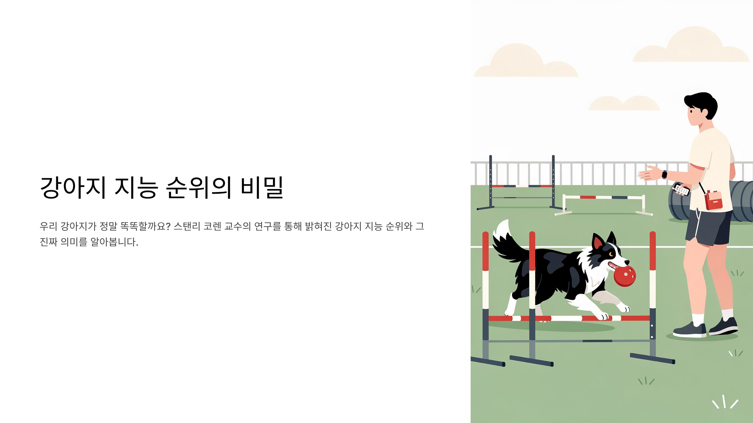 오늘은 이 연구 결과를 바탕으로 강아지 지능 순위를 정확하게 알아보고, 순위가 낮은 강아지는 정말 머리가 나쁜 것인지에 대한 오해까지 풀어보겠습니다.