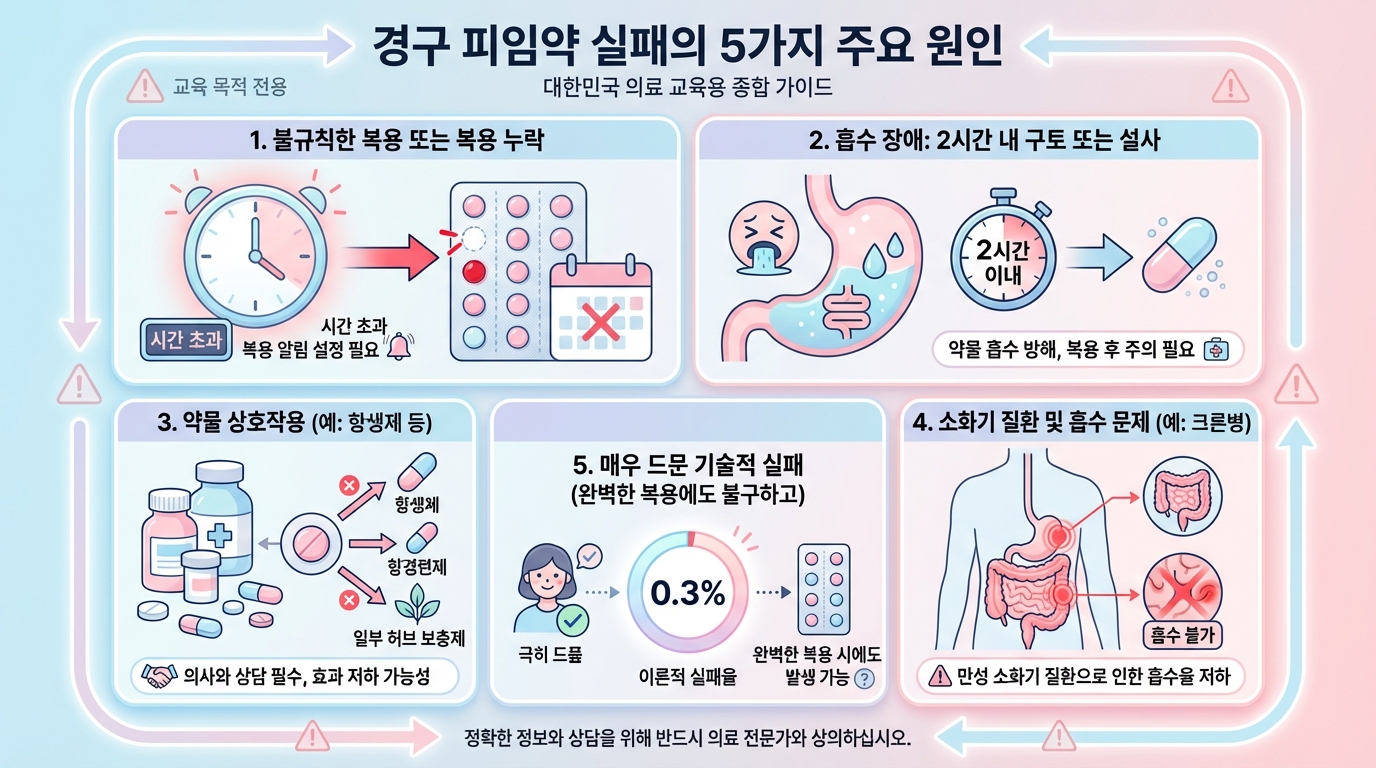 그렇다면 피임약을 복용 중에도 임신이 되는 경우는 왜 발생할까요? 주요 원인들을 살펴보겠습니다.
