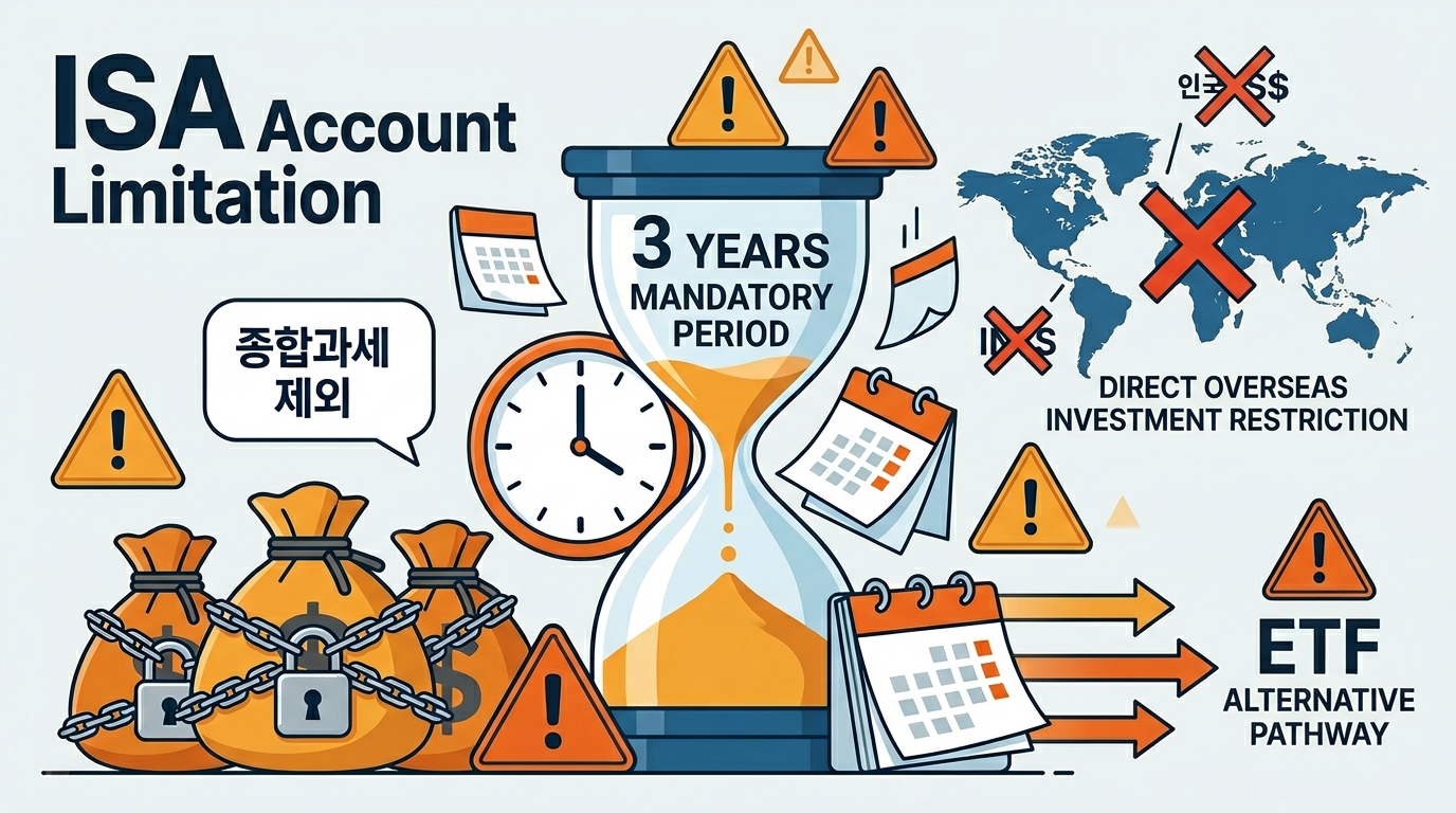 모든 금융상품이 그렇듯, ISA 계좌 역시 완벽하지만은 않습니다. 투자 성향에 따라 아래의 단점들이 치명적일 수 있으니 꼭 체크하셔야 합니다.