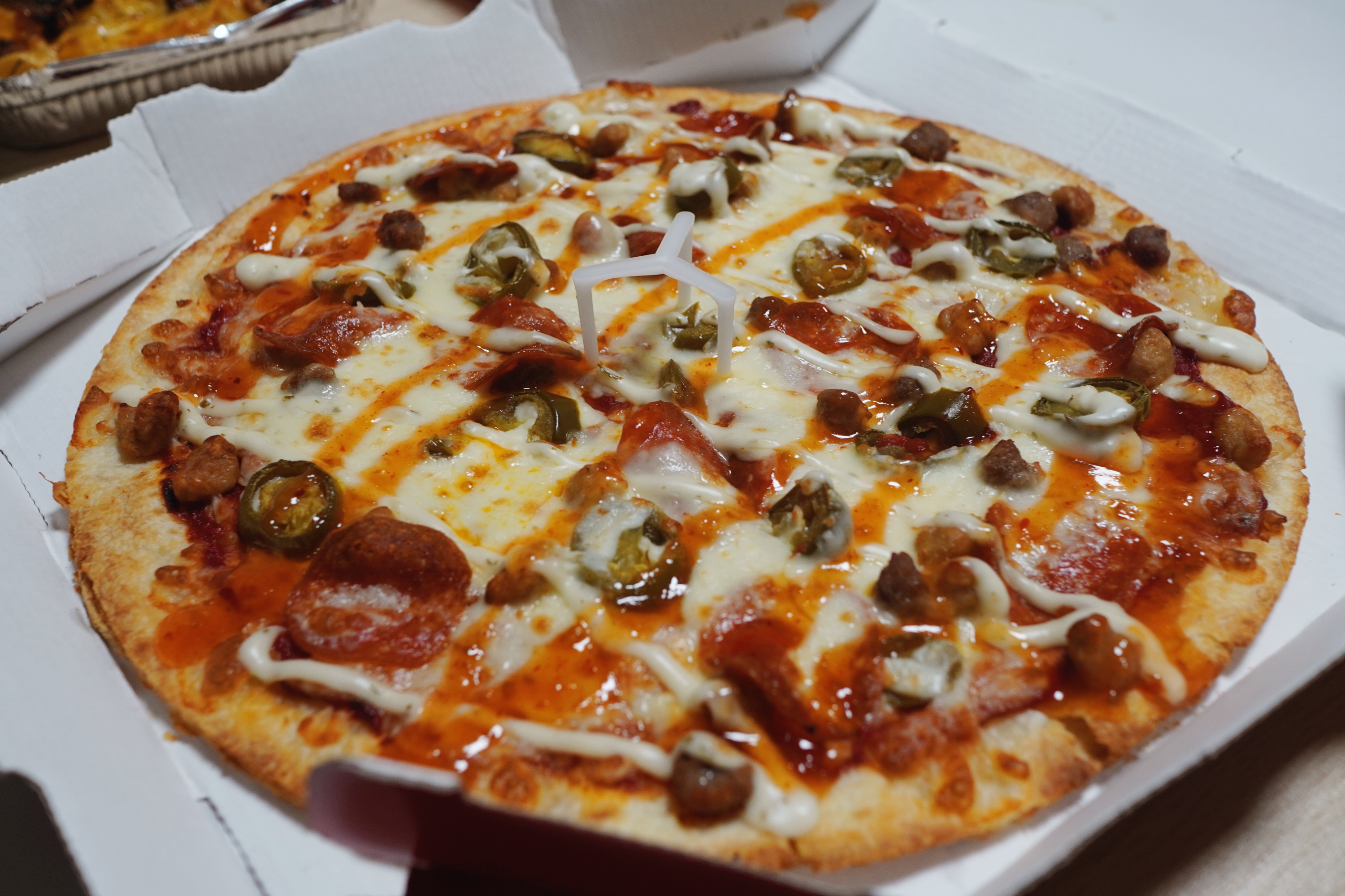 안녕하세요! 일상처럼 기사를 보고 있었는데, 피자헛의 새로운 메뉴가 나왔더라고요! 씬 (할라피뇨 뿜뿜 / 달달 옥수수) 메뉴가 나왔는데, 달달 옥수수도 같이 먹을까 생각을 하다가, 너무 많을 거 같아서.. 오늘은 피자헛의 새로운 메뉴 할라피뇨 뿜뿜을 먹고 후기를 적어보려고 합니다! 더블 씬도우 할라피뇨 뿜뿜 제 지인이 피자를 좋아하고, 거기에 매운 음식을 또 좋아해서 피자헛의 "할라피뇨 뿜뿜"의 피자의 이름만으로 지인에게는 아주 행복한 피자였습니다. 그래서 지인에게 널 위한 피자다. 하면서 주문을 하고, 예상 배달시간보다 일찍 와서 기대에 부풀어서 피자 박스를 오픈했는데, 처음 본 할라피뇨 뿜뿜 비주얼은 그렇게 나쁘지 않았습니다. 피자를 즐겨 드시는 분들은 사진을 보고, 바로 알 수도 있을 텐데, 정말 ..